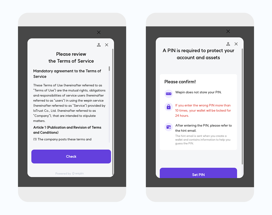 *위핀(Wepin) 지갑: 이메일 및 소셜로그인 인증을 통해 로그인하면 즉시 사용이 가능한 웹3 기반의 블록체인 지갑 서비스